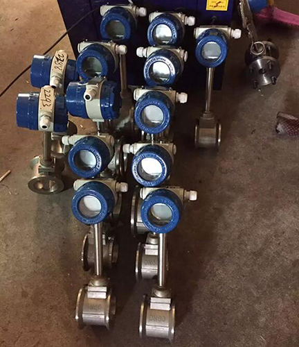 這些交替變化的旋渦就形成了一系列交替變化的負壓力,該壓力作用在檢測探頭上,便產生一系列交變電信號,經(jīng)過前置放大器轉換、整形、放大處理后,輸出與旋渦同步成正比的脈沖頻率信號或標準信號。