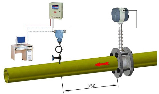 流量調(diào)節(jié)閥或壓力調(diào)節(jié)閥盡量安裝在傳感器的下游5D以遠(yuǎn)處,若必須安裝在傳感器的上游,傳感器上游應(yīng)有不小于50D的等徑直管段,下游應(yīng)有不小于5D的等徑直管段。
