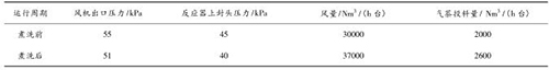 壓縮空氣計量表煮洗吹掃后,裝置運行期間無燃爆事故,且裝置運行的風(fēng)量明顯提高,系統(tǒng)阻力明顯降低,投料量增加。現(xiàn)將煮洗前后的運行數(shù)據(jù)對比如下: