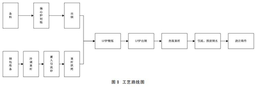 1.1 偏心爐+LF 爐雙聯(lián)冶煉工藝,鋼包冷調(diào)、熱裝一體化孔板流量計(jì)工藝路線圖簡(jiǎn)介如圖 1。