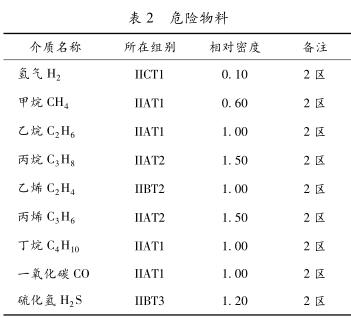 操作溫度為48.9℃,沒有特殊性,選擇普通的渦街流量計即可;根據(jù)現(xiàn)場情況,流量計為露天安裝,防護等級選擇IP65即可;根據(jù)《爆炸危險環(huán)境電力裝置設計規(guī)范》GB50058-2014,本裝置中各介質(zhì)所在組別屬于危險物料,見表2。因此儀表的防爆標志選擇ExiaⅡCT4Gb即能滿足要求。根據(jù)項目統(tǒng)一要求輸出信號選擇為4~20mA+HART。