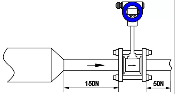 2、調(diào)節(jié)閥盡可能不安裝在渦街流量?jī)x表的上游,而應(yīng)安裝在壓縮空氣流量計(jì)的下游10D處。