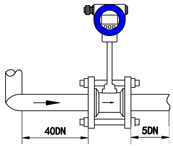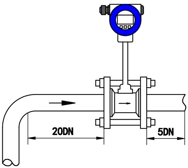 2、調(diào)節(jié)閥盡可能不安裝在液體渦街流量計的上游,而應(yīng)安裝在液體渦街流量計的下游10D處。