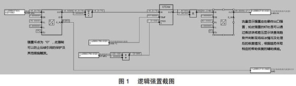 當發(fā)生上述情況時,熱控應及時采取邏輯強置措施。強置的具體措施為強置流量顯示和差壓測量的壞質量判斷。具體流量強置數(shù)值應咨詢運行人員,并根據(jù)就地處理進度確定強置的數(shù)值,如果采取強置大值的方法應在此基礎上增加一定的偏置,如果采取強置小值的方法應在此基礎上減少一定的偏置,以此保證在邏輯三取中時不會選中結冰的差壓式流量變送器,保證正常測量的數(shù)值參與調節(jié)和保護。詳見圖1。