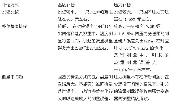 2.1.1飽和蒸汽采用溫度補償和壓力補償?shù)谋容^